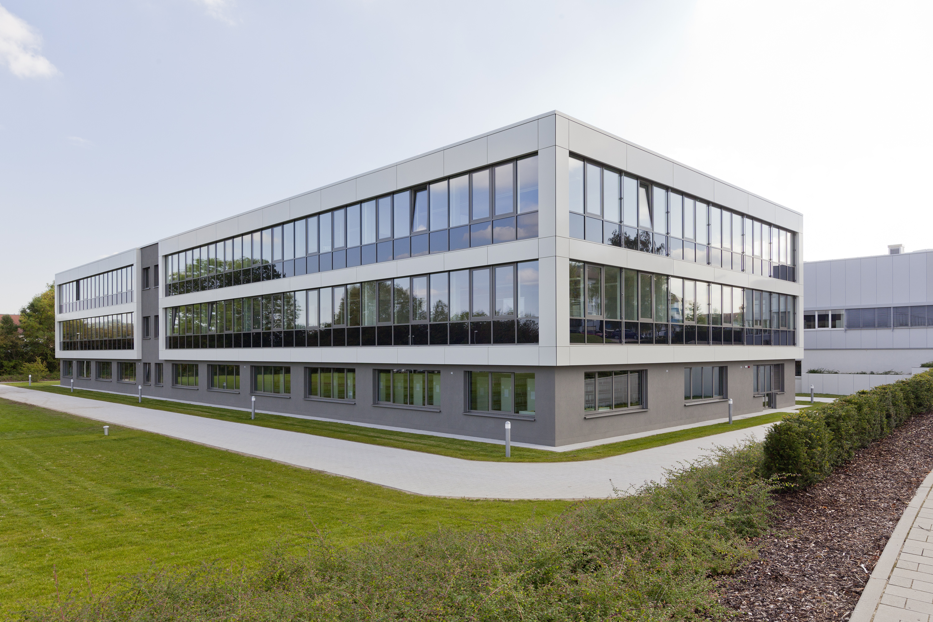 Klares Design sowie hohe Energieeffizienz und Zukunftstechnik zeichnen den Neubau aus. 40 Erdwärmesonden der Weishaupt Tochter BauGrund Süd stellen sämtliche Energie umweltschonend und ohne Belastung durch Kohlenstoffdioxid bereit, die zum Heizen und Kühlen gebraucht wird. Zwei Weishaupt Sole/Wasser-Wärmepumpen WWP S übernehmen die Beheizung des Neubaus. Die Kühlung des Gebäudes erfolgt passiv über das Erdsondenfeld. Selbstredend, dass die Gebäudeautomation hier auf neuestem Stand ist.